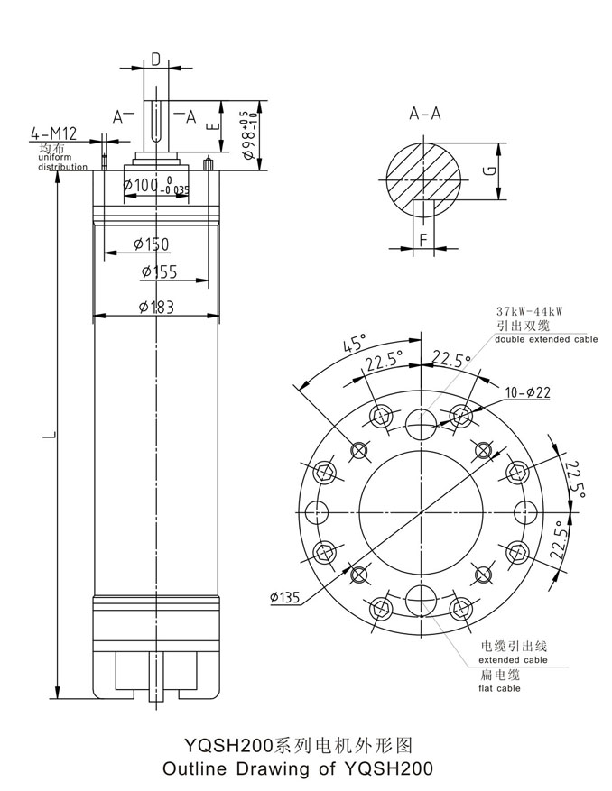 概述 YQSH系列潛海水三相異步電動(dòng)機(jī)為充水密封型三相異步電動(dòng)機(jī),是在引進(jìn)德國里茨公司技術(shù)基礎(chǔ)上研發(fā)的新產(chǎn)品,主要用于海上平臺(tái)驅(qū)動(dòng)潛水泵提取海水、有腐蝕的液體介質(zhì)、也可以在含氯離子較多的水質(zhì)中使用。電動(dòng)機(jī)的導(dǎo)軸承、止推軸承等重要零部件均采用了新型結(jié)構(gòu)和新材料,在密封和防腐方面都采用了一系列特殊設(shè)計(jì),具有機(jī)構(gòu)簡單、運(yùn)行可靠、使用壽命長、維修方便、力能指標(biāo)高等優(yōu)點(diǎn)。