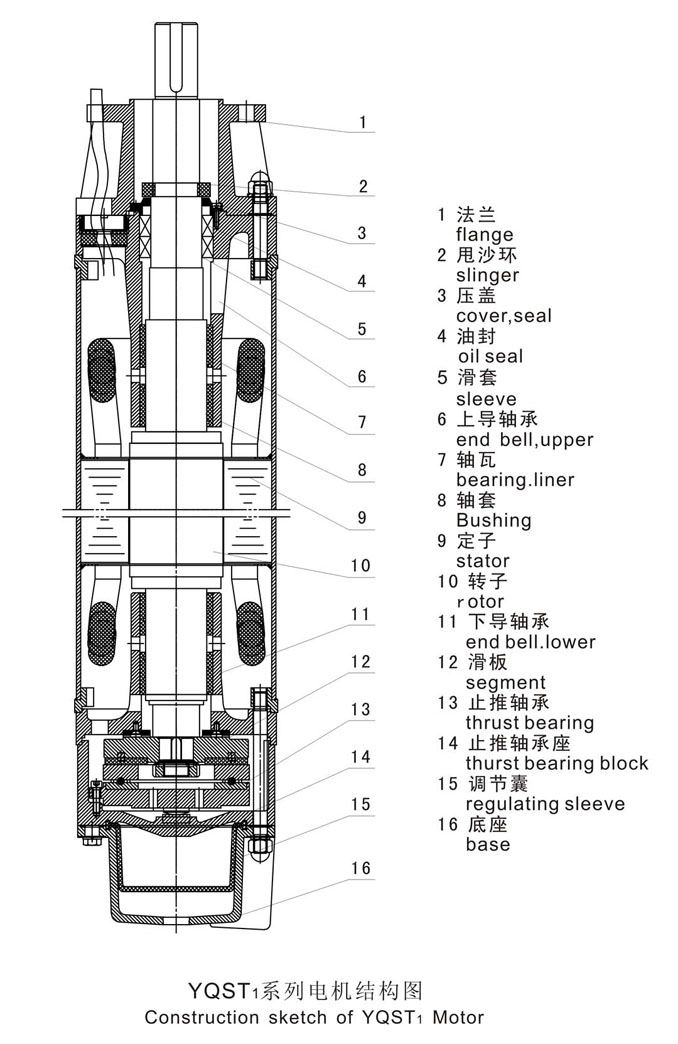 YQST系列大容量潛水三相異步電動(dòng)機(jī)是應(yīng)國(guó)際市場(chǎng)需要,在小井徑中發(fā)展大容量電機(jī)而專門開發(fā)的一種新型潛水電機(jī),他特別適用于高揚(yáng)程潛水泵配套提取地下水,為城市工礦企業(yè)、農(nóng)業(yè)灌溉及居民生活提供生產(chǎn)和生活用水。本產(chǎn)品除具備一般井用潛水電機(jī)特點(diǎn)外,還具有單機(jī)容量大,力能指標(biāo)高,承受軸向力大,密封性能好等特點(diǎn)。為了適應(yīng)用花需要,電機(jī)機(jī)殼可采用不銹鋼材料,但需在合同中注明。