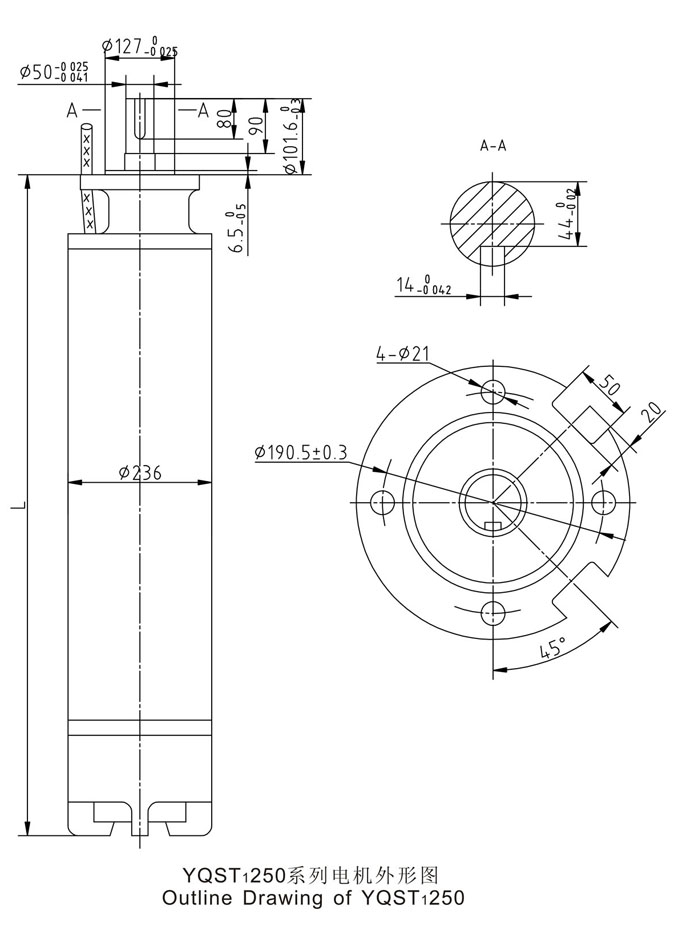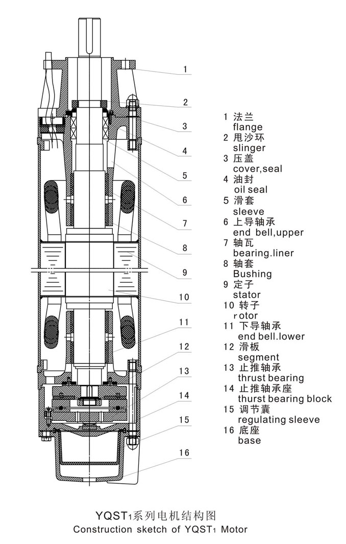 概述 YQST系列大容量潛水三相異步電動(dòng)機(jī)是應(yīng)國際市場需要,在小井徑中發(fā)展大容量電機(jī)而專門開發(fā)的一種新型潛水電機(jī),他特別適用于高揚(yáng)程潛水泵配套提取地下水,為城市工礦企業(yè)、農(nóng)業(yè)灌溉及居民生活提供生產(chǎn)和生活用水。本產(chǎn)品除具備一般井用潛水電機(jī)特點(diǎn)外,還具有單機(jī)容量大,力能指標(biāo)高,承受軸向力大,密封性能好等特點(diǎn)。為了適應(yīng)用花需要,電機(jī)機(jī)殼可采用不銹鋼材料,但需在合同中注明。 型號(hào)說明